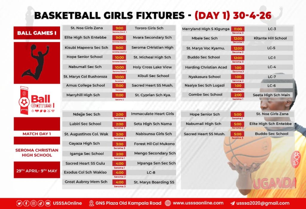 Basketball 5×5 -3 Courts – Uganda Christian University (UCU),3 Courts – Seroma Christian High School and 2 Courts – For Training (Boys) Namilyango College